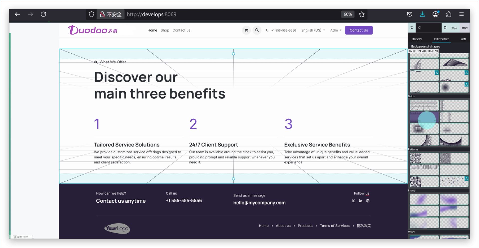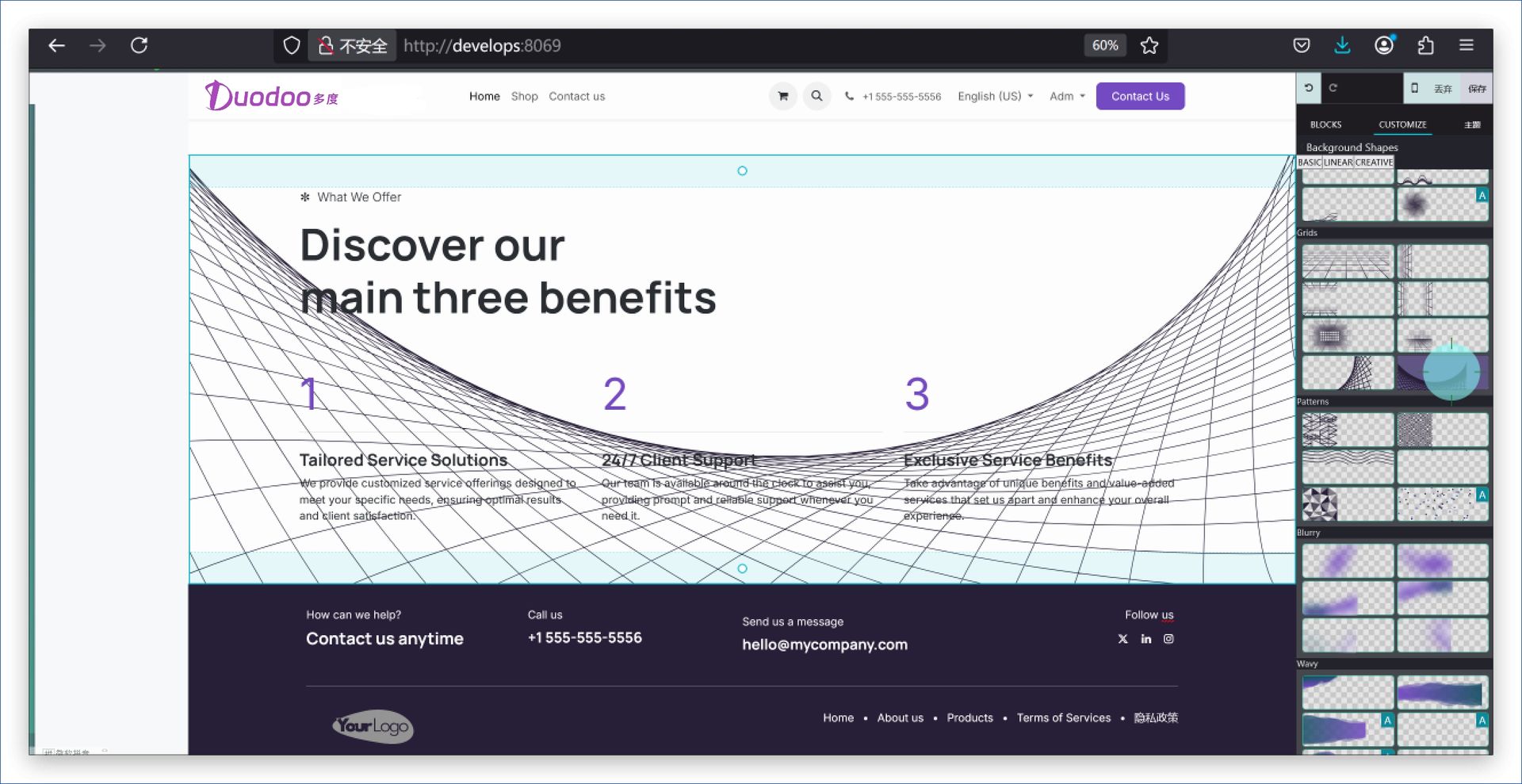 - 绑定动态路径:底部导航栏链接到Odoo自定义页面(如Terms of Services自动同步法务模块)